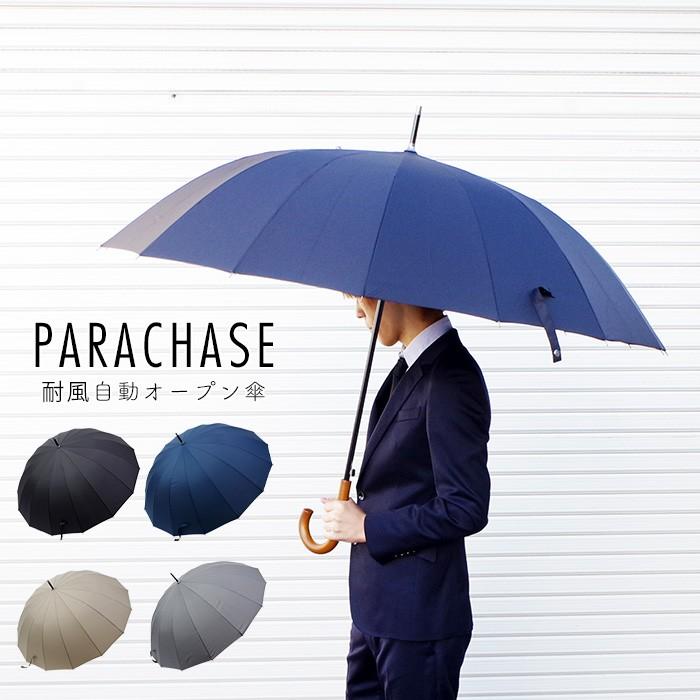 傘 メンズ 長傘 16本骨 耐風傘 おしゃれ 大きい 丈夫 Parachase 全4色 7165 無地 シンプル ワンタッチ ジャンプ 自動オープン Msped7165 Zakka Green 通販 Yahoo ショッピング
